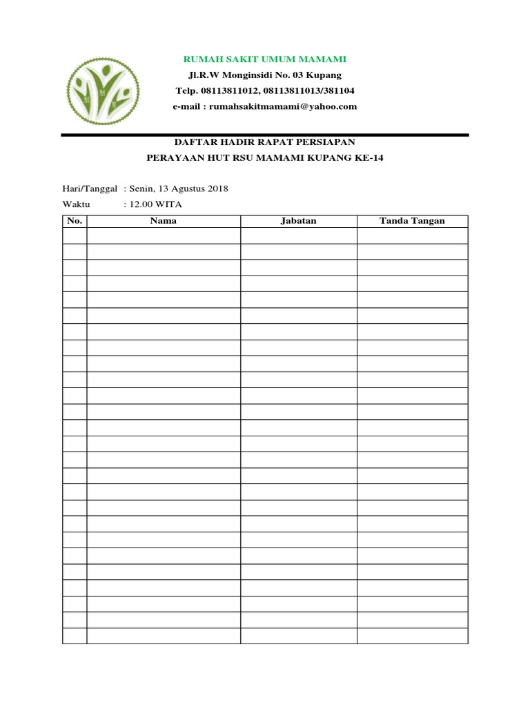 1 from Meeting kantor perwakilan pekalongan i kamis, 5 maret 2014 no. Dengan cara ini host bisa mendapatkan data peserta lebih detail untuk keperluan bisnis maupun marketing. Catatan iseng contoh daftar hadir meeting. Zoho meeting menyediakan solusi rapat online dan webinar yang mudah, aman, dan andal bagi individu, ukm, dan perusahaan besar. Peserta cukup menuliskan nama atau instansi untuk mengkonfirmasi kehadiran. Daftar hadir sangat penting untuk dibuat demi mengetahui keaktifan peserta didik dalam mengikuti pembelajaran secara online. Nomor induk karyawan (nik) *. Untuk bisa membuat sebuah daftar hadir dalam bentuk online, maka anda tentunya membutuhkan sebuah panduan tentang bagaimana cara untuk bisa membuat daftar hadir secara online.