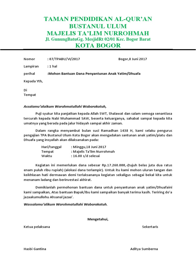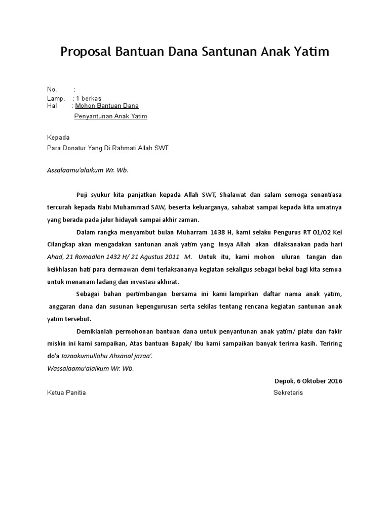 Doc Proposal Bantuan Dana Untuk Santunan Anak Yatim Risi Kapur Academia Edu from 0.academia-photos.com Proposal santunan anak yatim 2020. We did not find results for: Check spelling or type a new query. Maybe you would like to learn more about one of these?