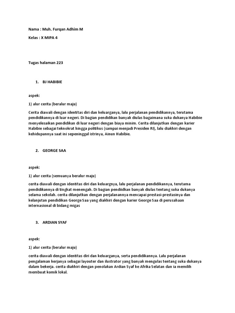 Tugas halaman 223 bahasa indonesia kelas 10.